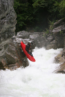 Peppi boofing his SCUD on the double drop in the second canyon.