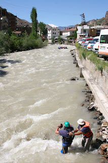 With an easy drive to the put-in and the takeout located in bustling down town(used loosely) Yusufeli, the Barhal is a fun run with different dynamics from the Coruh. Myself, Sophy(NZ), Marc(Swiss), Fletch, Hamish and crews had high water, as it was in the trees when we went down it.
