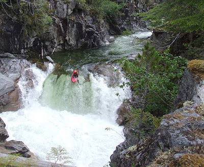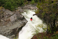 From the drop in the last picture you head down stream avoiding the log on river left. Get high on the outside, turn toward the right and plug the last drop. So much fun. Photo by Antje Boehm.
